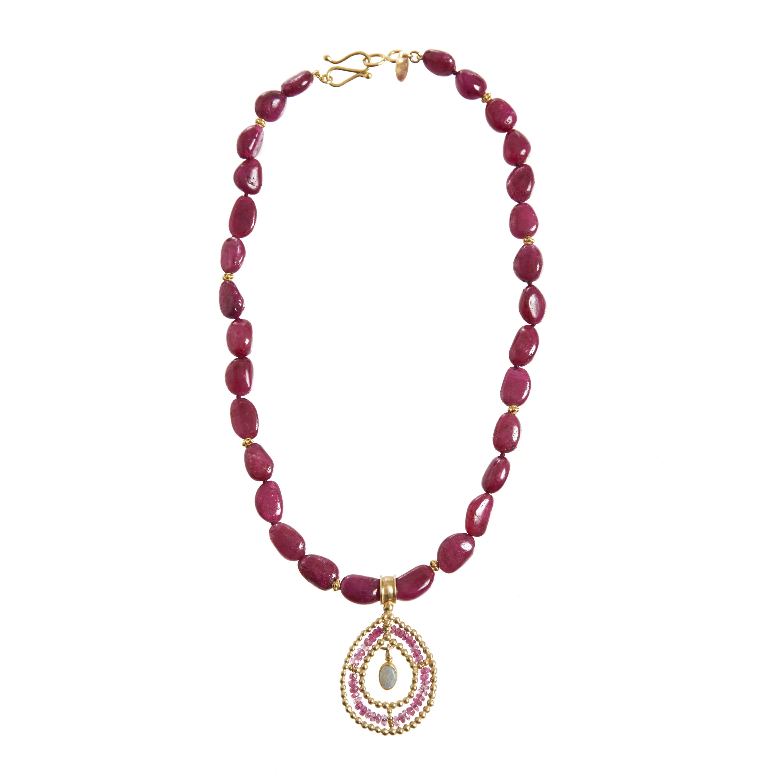 20K Handmade Chain with 22K Set Carved Pink Opal